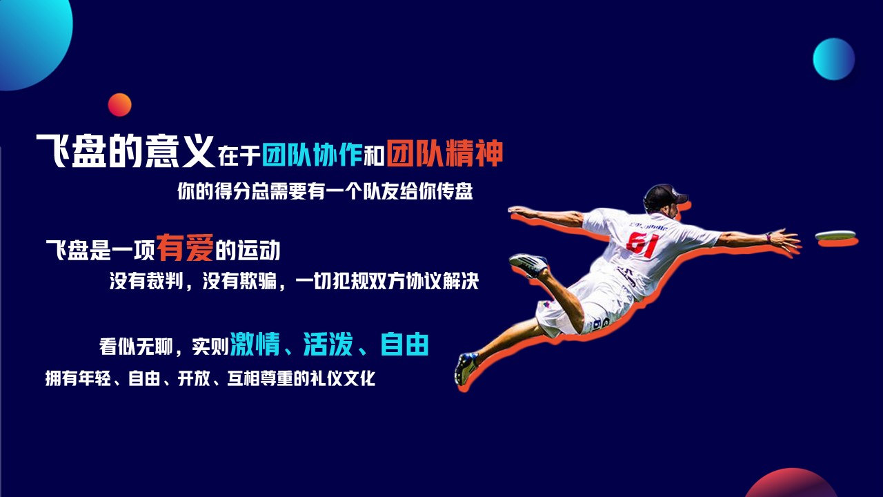 飞盘运动运动是一项七人制的团队竞技运动,没有裁判,男女混合,受到大学生和白领阶层的热捧,近年来在中国开始流行。