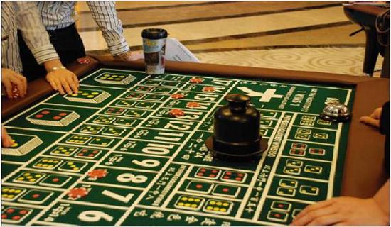 主场周围设置成博彩区共有21点、俄罗斯轮盘、百家乐、梭哈及猜大小五种博彩方式,供来宾体验